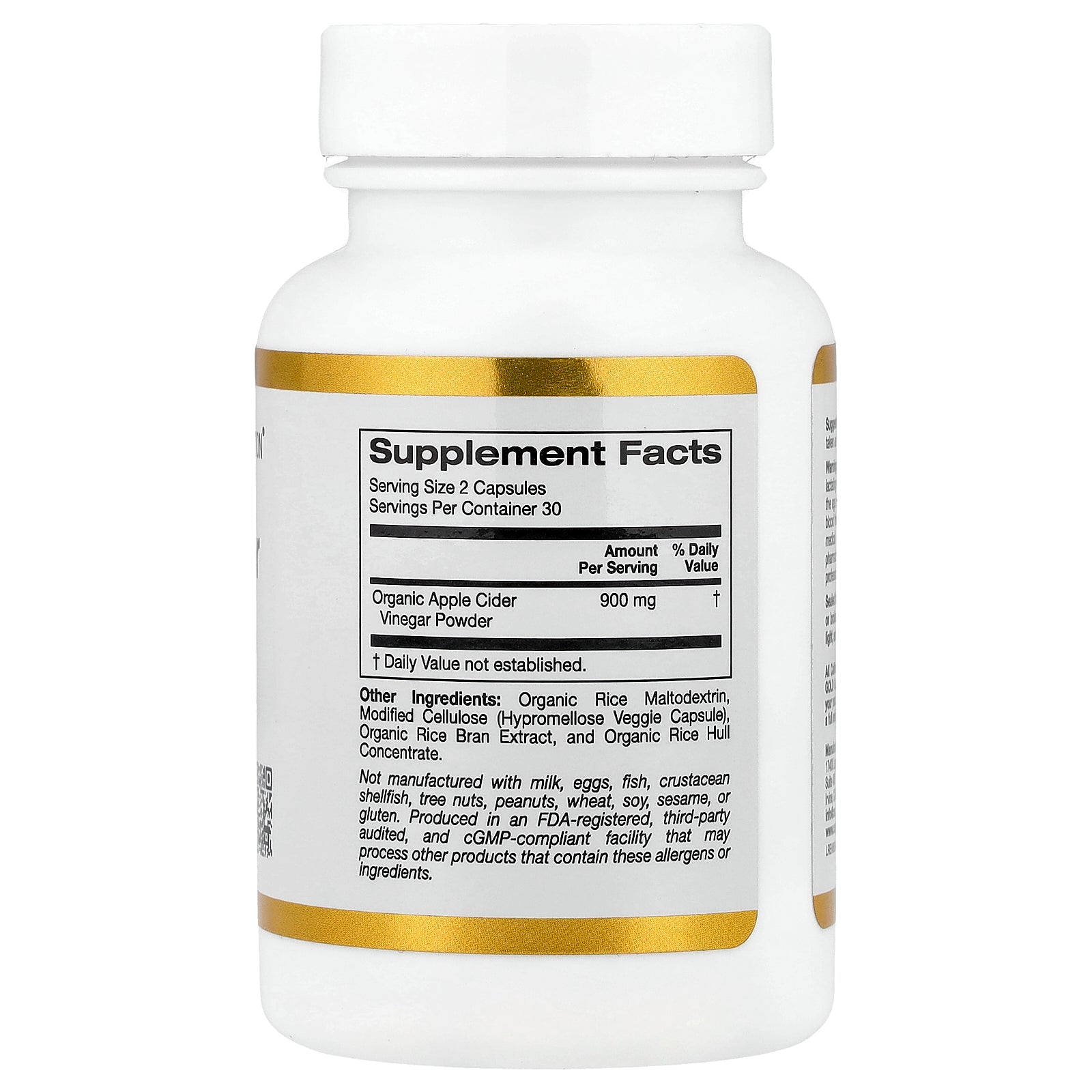 California Gold Nutrition Apple Cider Vinegar features Organic Apple Cider Vinegar powder in vegetarian capsules.
