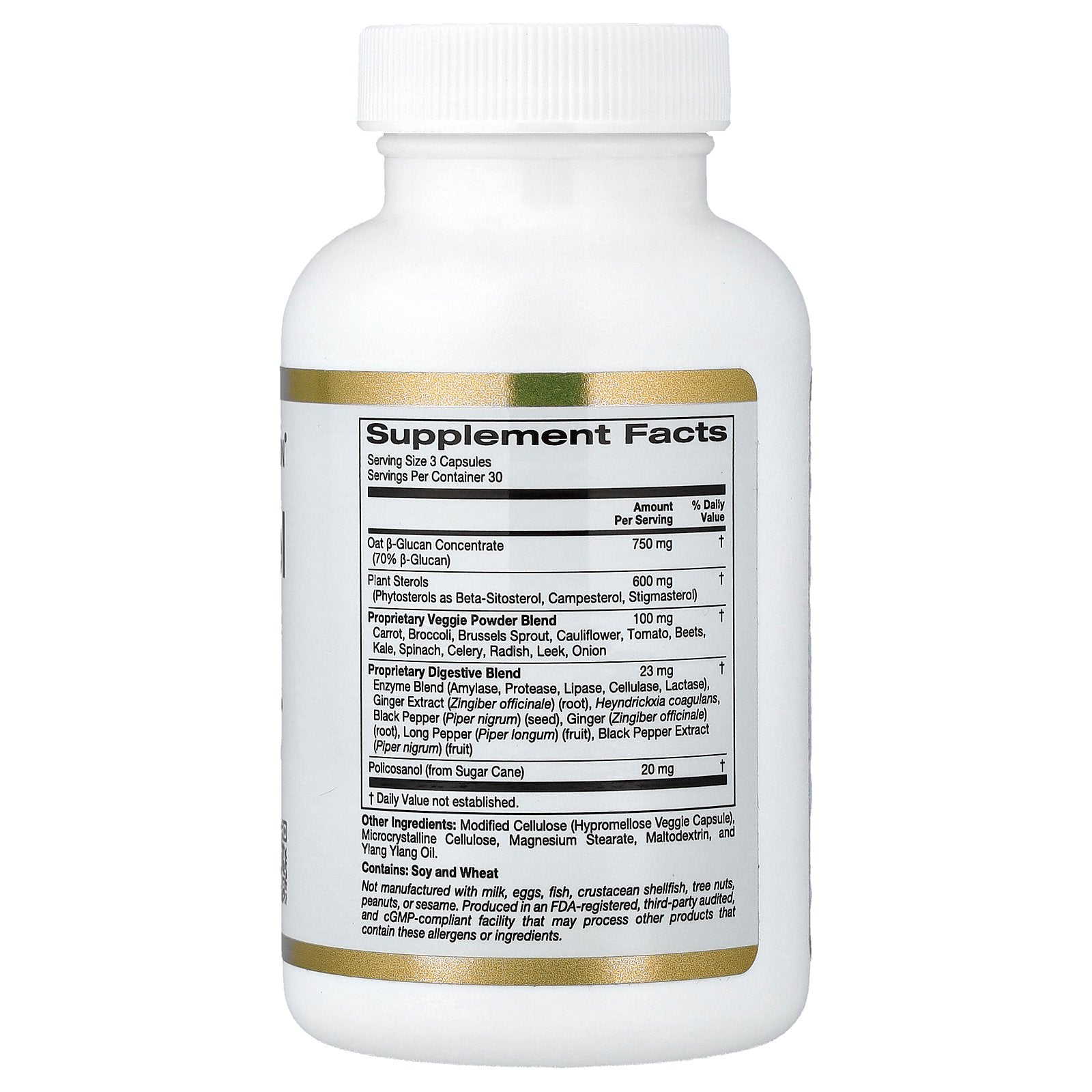 California Gold Nutrition® Cholesterol Support* is formulated with a combination of three primary ingredients that have clinically demonstrated their ability to help support overall cardiovascular health.* Oat Beta-Glucan, Plant Sterols & Policosanol help support cholesterol levels already within the normal range. Additionally, the Proprietary Veggie and Digestive Blends, which includes naturally occurring phytonutrients derived from twelve healthy veggies and enzymes like Amylase, Protease, and Lipase, along with Ginger and Black Pepper extracts, supports digestion and nutrient absorption.*