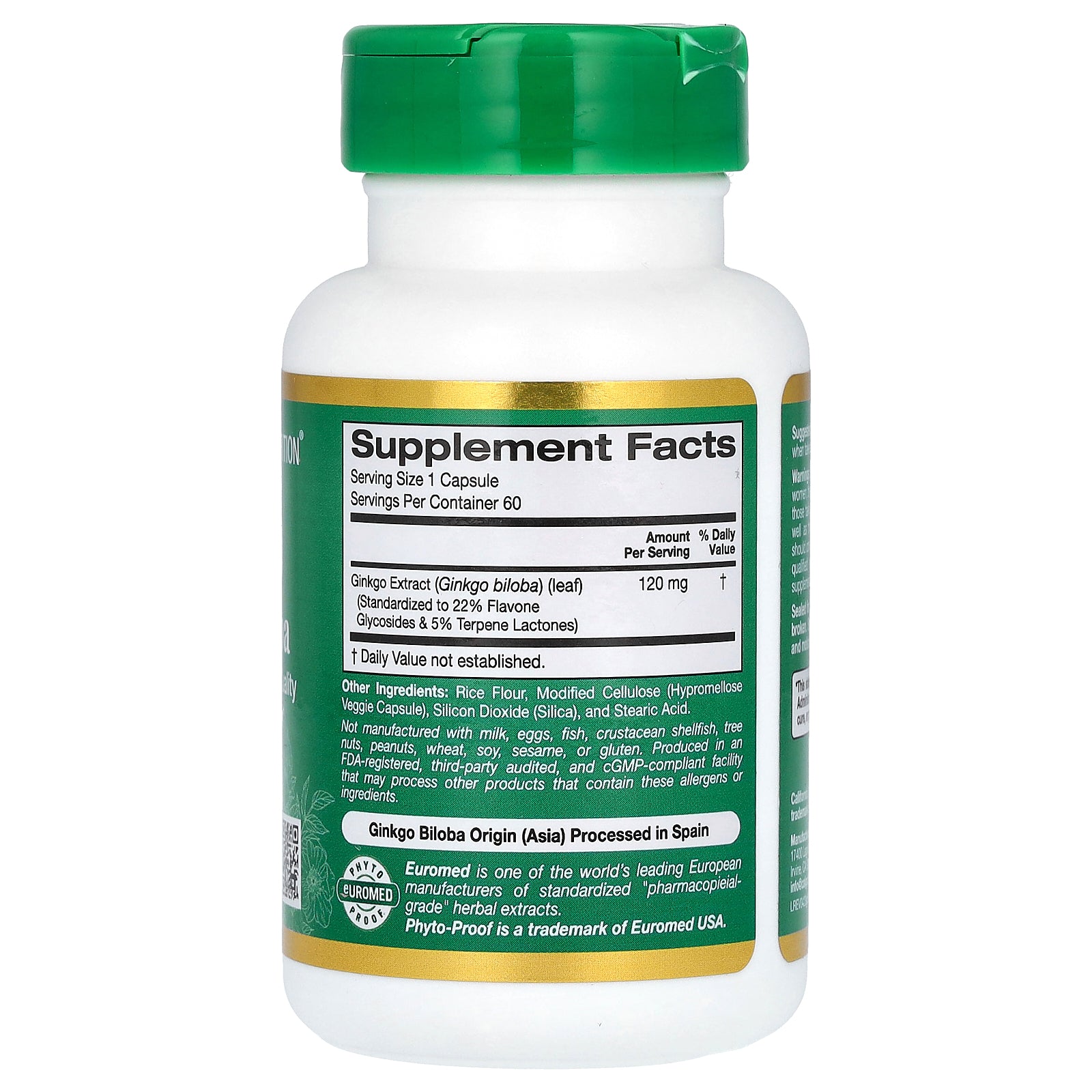 California Gold Nutrition®️ EuroHerbs™ Ginkgo Biloba contains a 120 mg premium grade extract standardized to 22% Flavone Glycosides and 5% Terpene Lactones.