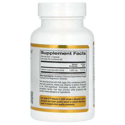 California Gold Nutrition, Gold C®, USP Grade Vitamin C, 1,000 mg, 60 Veggie Capsules