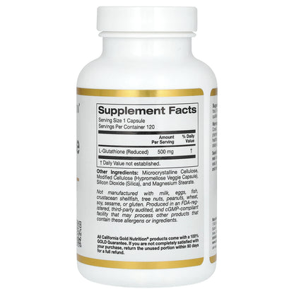 California Gold Nutrition, L-Glutathione (Reduced), 500 mg, 120 Veggie Capsules