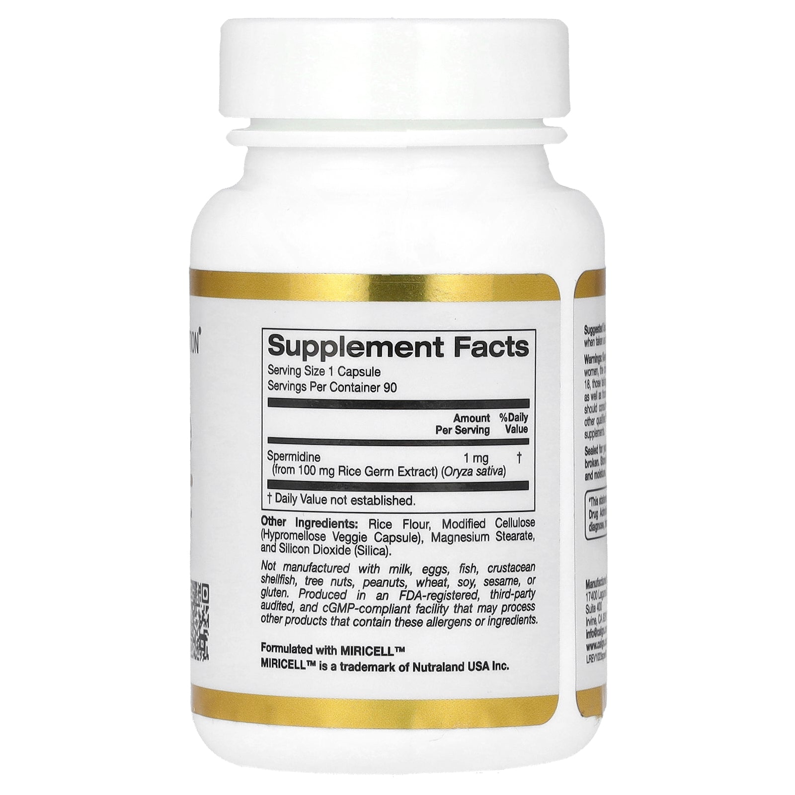 California Gold Nutrition, Spermidine, Rice Germ Extract, 1 mg , 90 Veggie Capsules