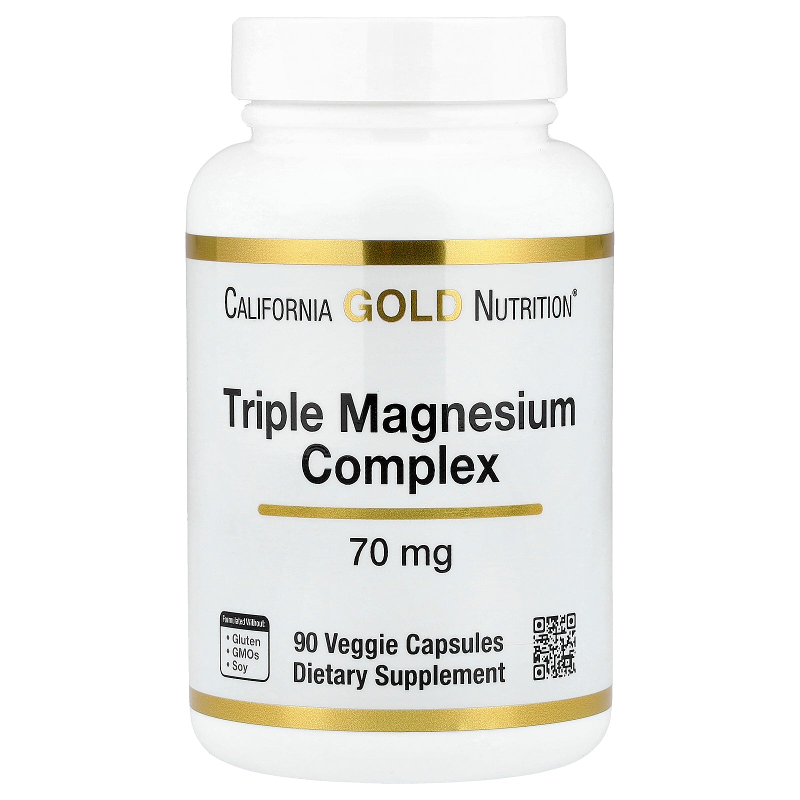 California Gold Nutrition® Triple Magnesium Complex combines three unique forms of bioavailable Magnesium (as Magnesium Acetyl Taurate,Magnesium Malate, Magnesium Bisglycinate Chelate) providing 210 mg of elemental magnesium per serving. Magnesium is an essential nutrient involved in many metabolic functions of the human body (e.g., heart health, bone health, nerve function, etc.)*