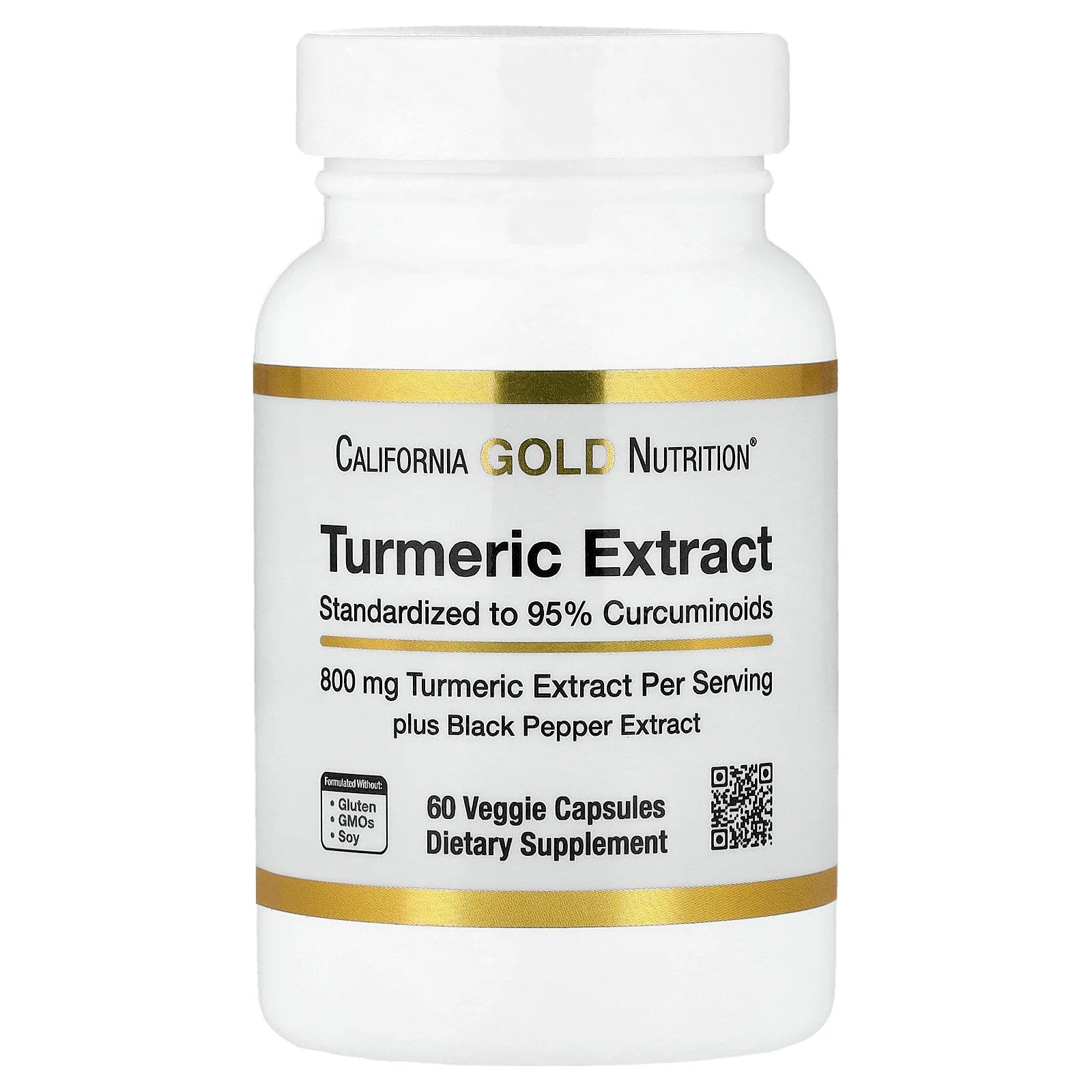 California Gold Nutrition® Turmeric Extract contains 800 mg of Turmeric Extract (Curcuma longa) with Black Pepper Extract (Piper nigrum). Curcumin by itself is poorly absorbed by the body. This synergistic formula with BioPerine® black pepper extract helps increase bioavailability.
