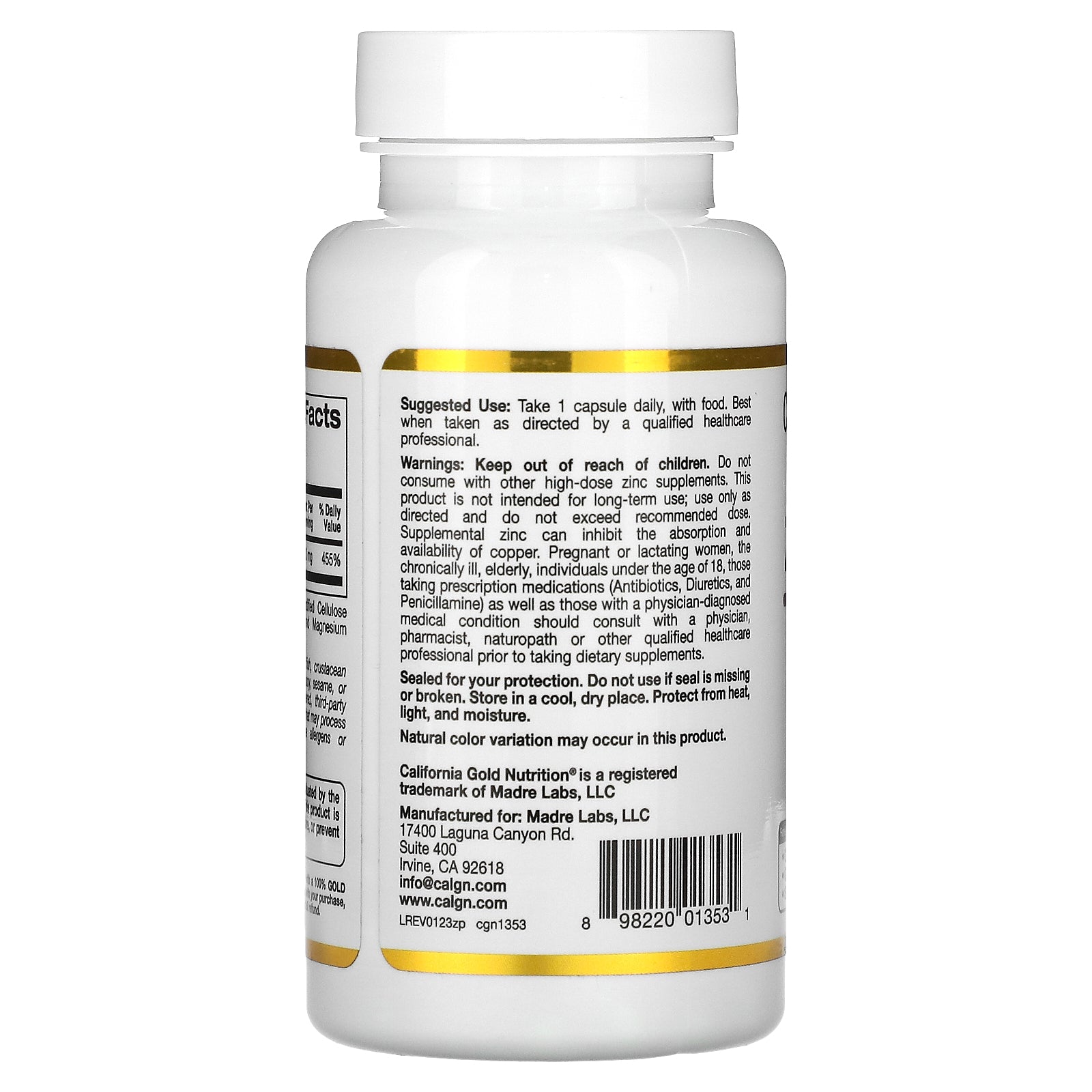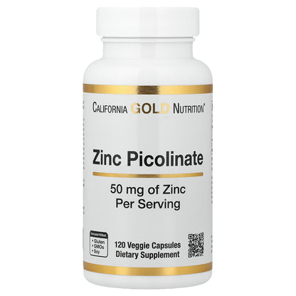 California Gold Nutrition Zinc Picolinate contains a chelated form of zinc in veggie capsules to help improve bioavailability.* It contains no gluten, GMOs, or soy and is suitable for vegetarians and vegans.