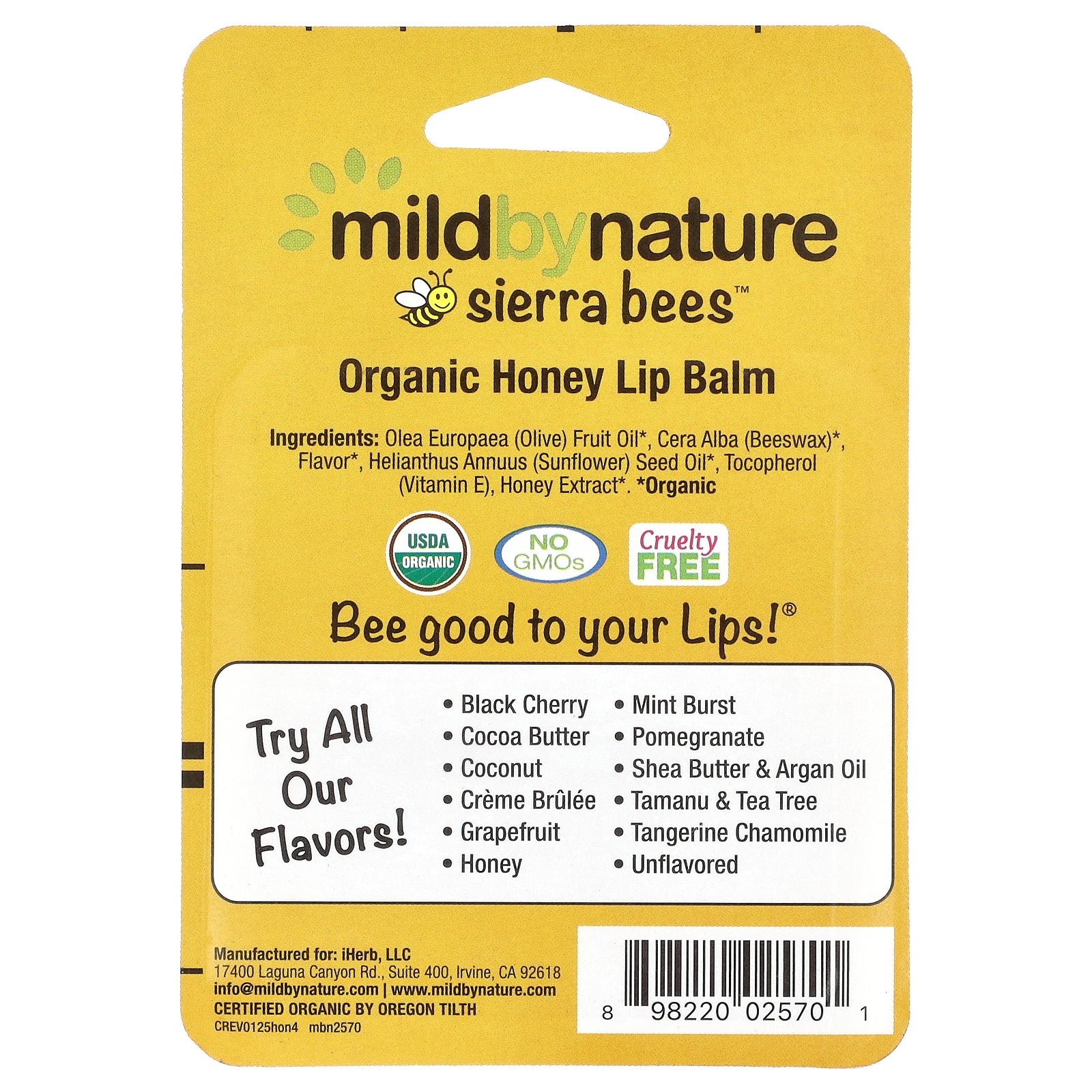 - Mild By Nature, Sierra Bees Organic Lip Balms